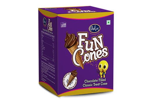 Fun Cones Chocolatechocolate filled classic treat cone… DESCRIPTION QTY PER CASE NET WEIGHT PER JAR 60 Cones X 14 g 840 g JAR CARTON 9 Jars X 840 g 7.56 Kgs BOX CARTON 18 Boxes X 420 g 7.56 Kgs ₹300.00 Variant Choose an optionJar (Rs 300)Clear Add to cart ENQUIRE NOW SKU: N/A Categories: Cups & Cones, Homecat, Molded Compound Chocolates, Sale Products