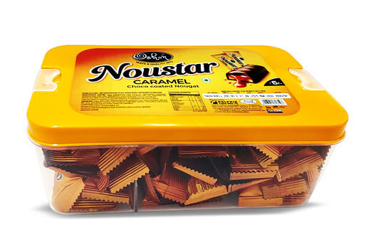 NoustarRich nougat caramel bar coated with chocolate. DESCRIPTION QTY PER CASE NET WEIGHT Box 24 Boxes X 560 g 13.44 Kgs Gift Pack Box 18 Boxes X 540 g 9.72 Kgs Categories: Homecat, Molded Compound Chocolates, Molded Compound Chocolates